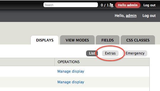 2. On the Display Suite administration page (admin/structure/ds ) select the Extras tab